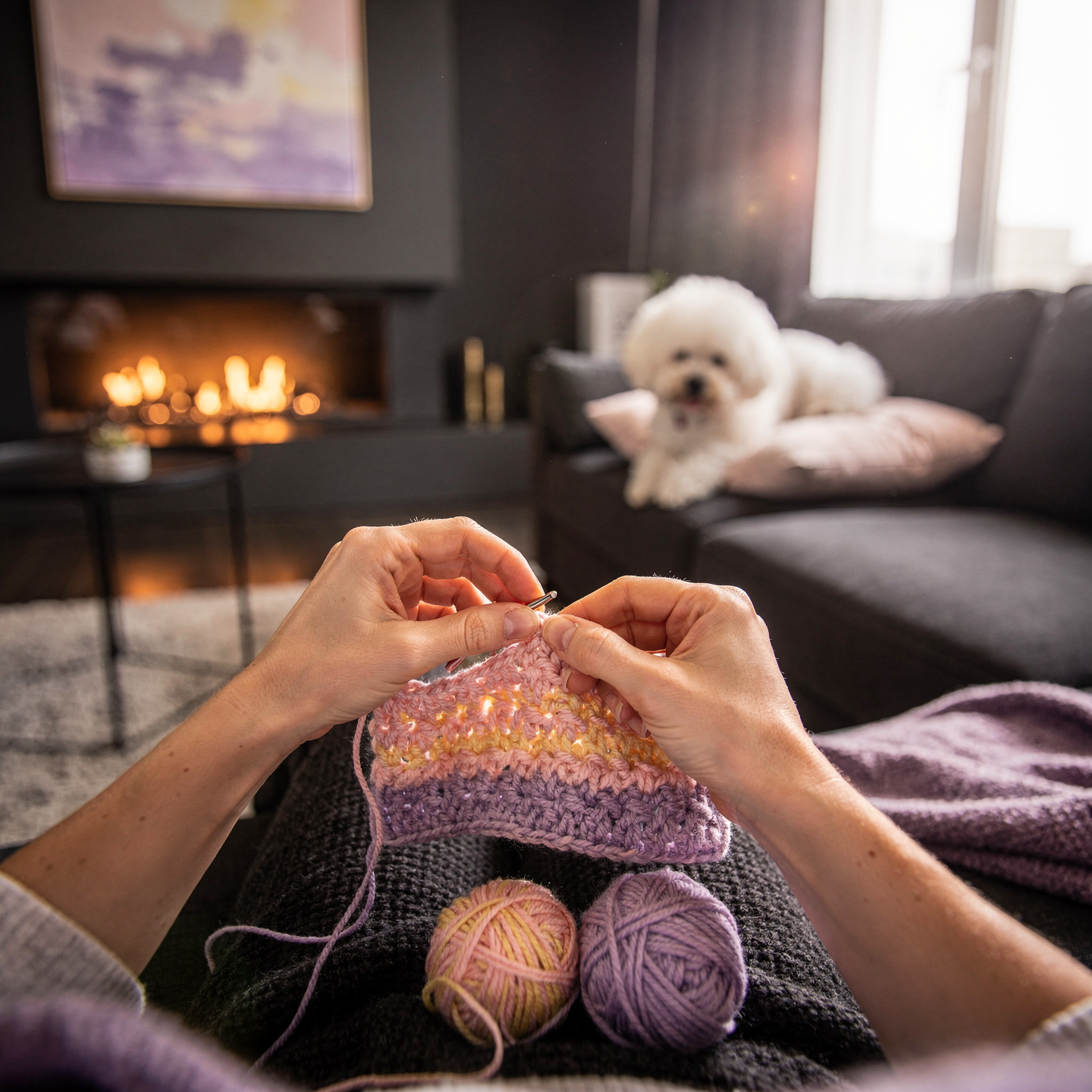 Crochet unexpectedly became my medium, bringing together softness, color, warmth, and the quiet joy of making something with intention. It offered a way to create art you can wear, hold, and feel.